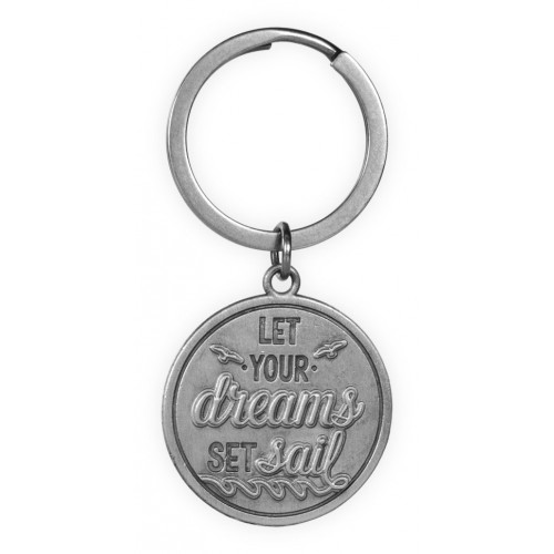 Intricately detailed pewter offers a lovely sentiment in artistic calligraphy on the front, with a peaceful sailboat amid the seagulls on the back. Among the spray of the ocean on the front is beautiful script saying, "Let Your Dreams Set Sail." This 2 1/2" Key Chain clips easily onto a bag or set of keys, so that you can keep the spirit of the beach with you wherever you go.