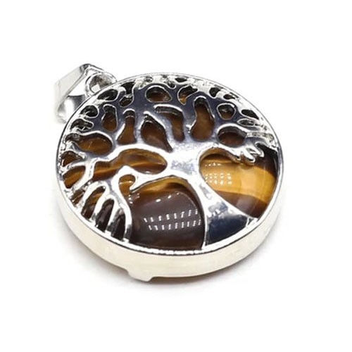 TREE OF LIFE  TIGER EYE GEMSTONE CAGE PENDANT TREE OF LIFE  TIGER EYE GEMSTONE CAGE PENDANT