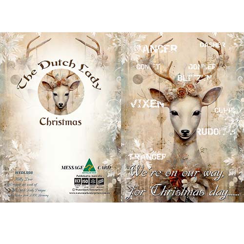 DUTCH LADY CHRISTMAS GREETING CARD Holly Deer